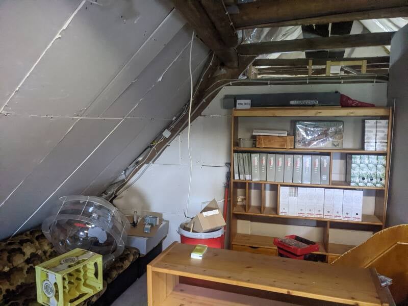 Die ersten Rigips platten sind dran und der erste Schrank steht fürs Archiv , viel platz ist auf der Baustelle nicht .